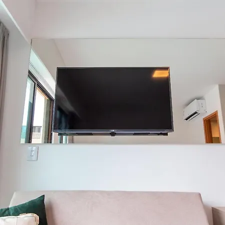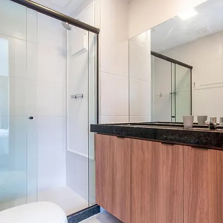 La maison dispose d'un balcon et d'une cuisine avec vue sur la piscine et de conforts tels qu'une climatisation. Cet appartement Mana Beach #C108 - Para 4 Pessoas Por Carpediem comprend 1 chambre à coucher. Dans la salle de bain, les clients de l'appartement ont accès à des serviettes.